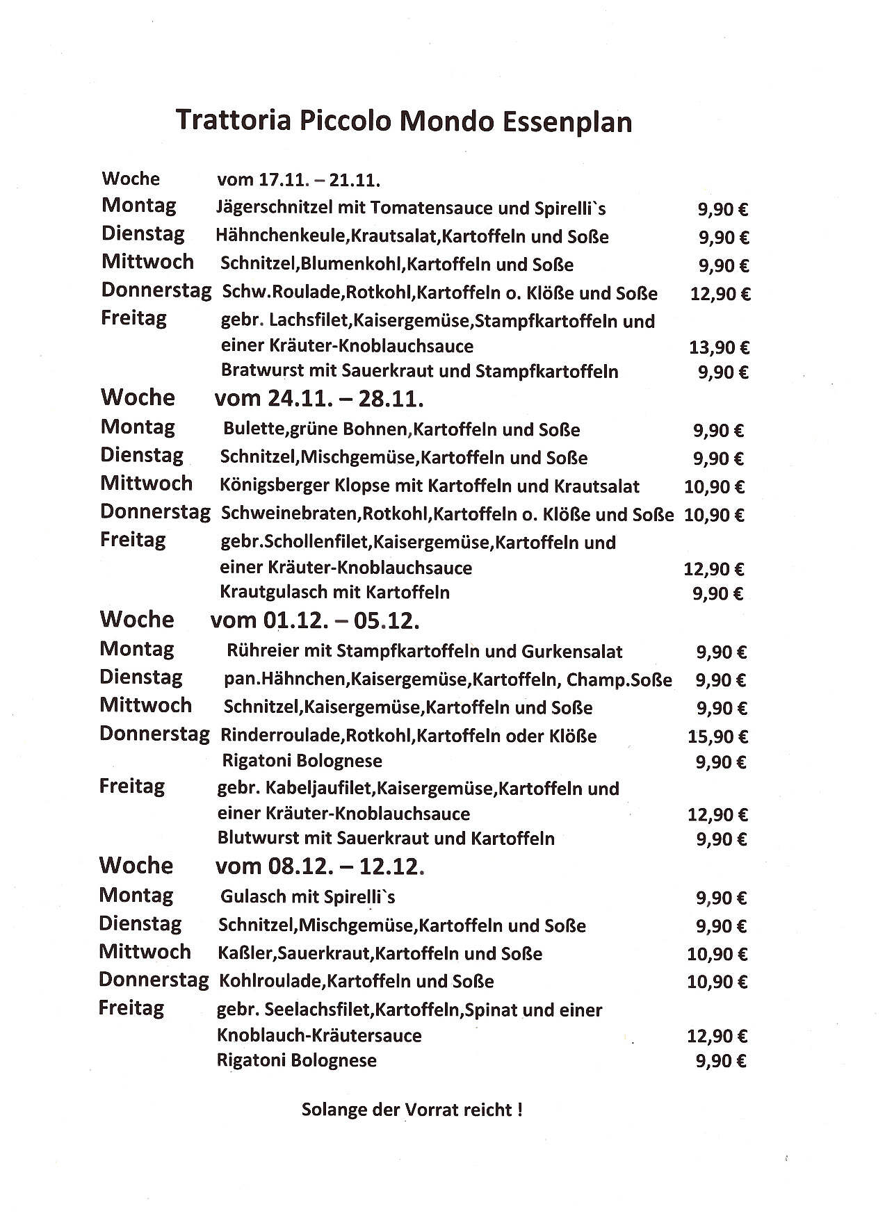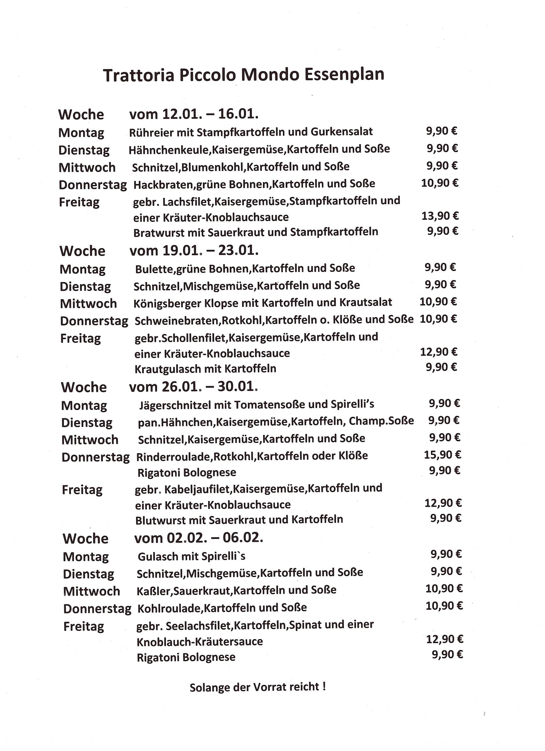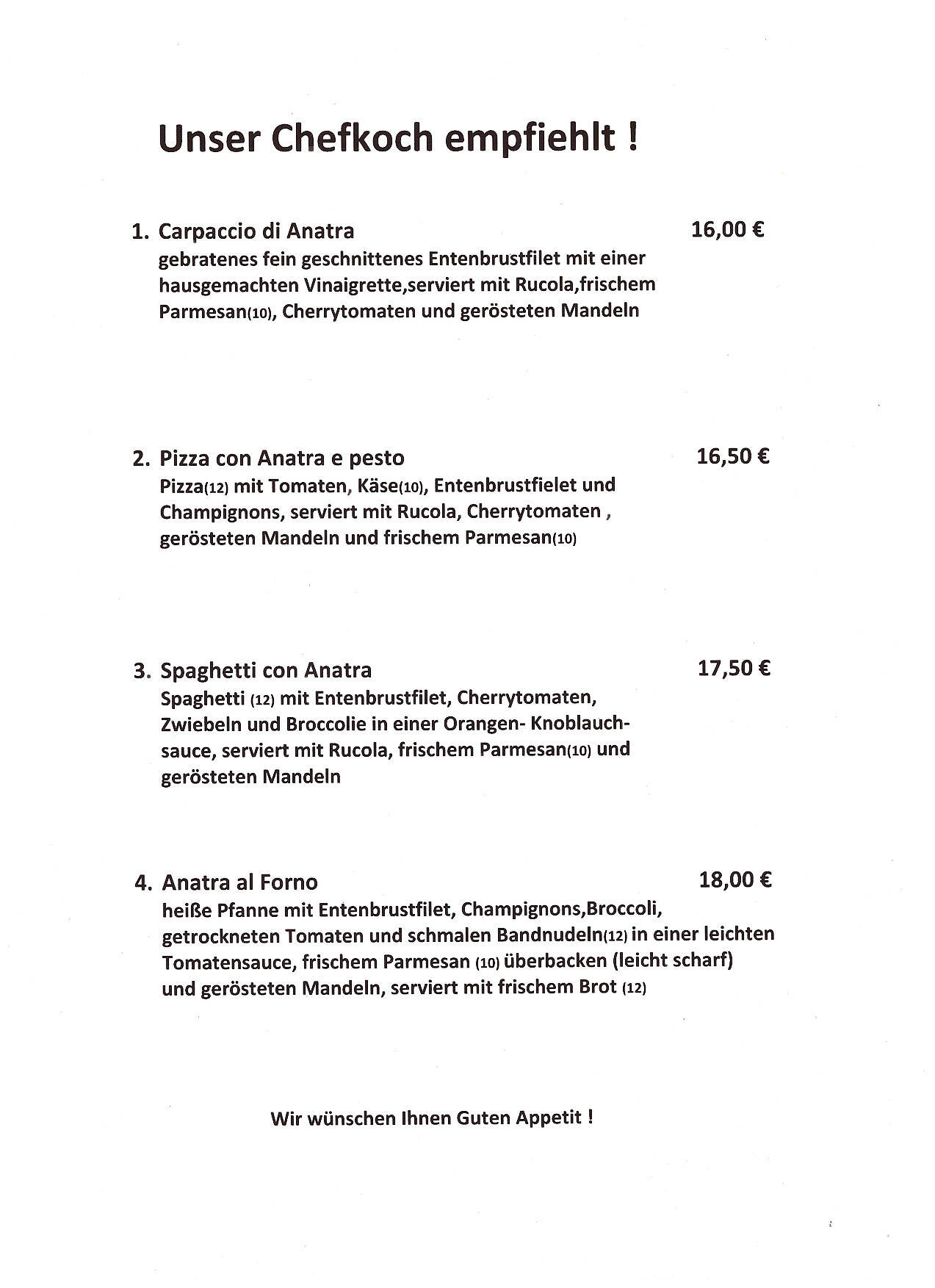 Seit nunmehr zwei Jahren verwöhnen wir Sie mit einer zusätzlichen, köstlichen, monatlich wechselnden Chefkochkarte, die sorgfältig ausgewählte Speisen für Ihren Gaumen bereithält. Damit ersetzen wir nicht unsere Wochenkarte, sondern bieten Ihnen noch mehr Vielfalt und Genuss. In unserer Piccolo Mondo Baruth Mark finden Sie das Beste aus der deutschen Imbisskultur und der italienischen Küche vereint. Entdecken Sie jetzt unsere leckeren Kreationen und lassen Sie sich von uns verwöhnen.