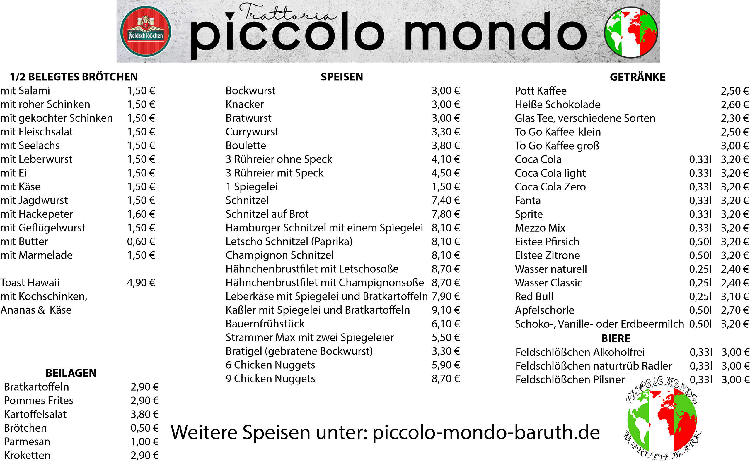 • Speisekarte
